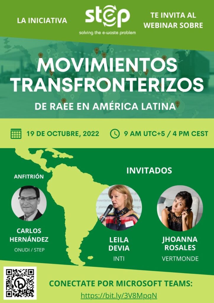 The StEP Working Group on Latin America is organizing a webinar on the topic of “Transboundary movements of Waste Electric and Electronic Equipment (WEEE) in Latin America” on 19. October 2022 at 9 am UTC+5. The webinar will serve also as an official release date of the publication on this topic developed by the Working Group on Latin America. The webinar will be held in Spanish language and will cover a range of topics such as legal situation overview, current and future trends, and main obstacles and challenges for sound management of WEEE in the Latin American context.